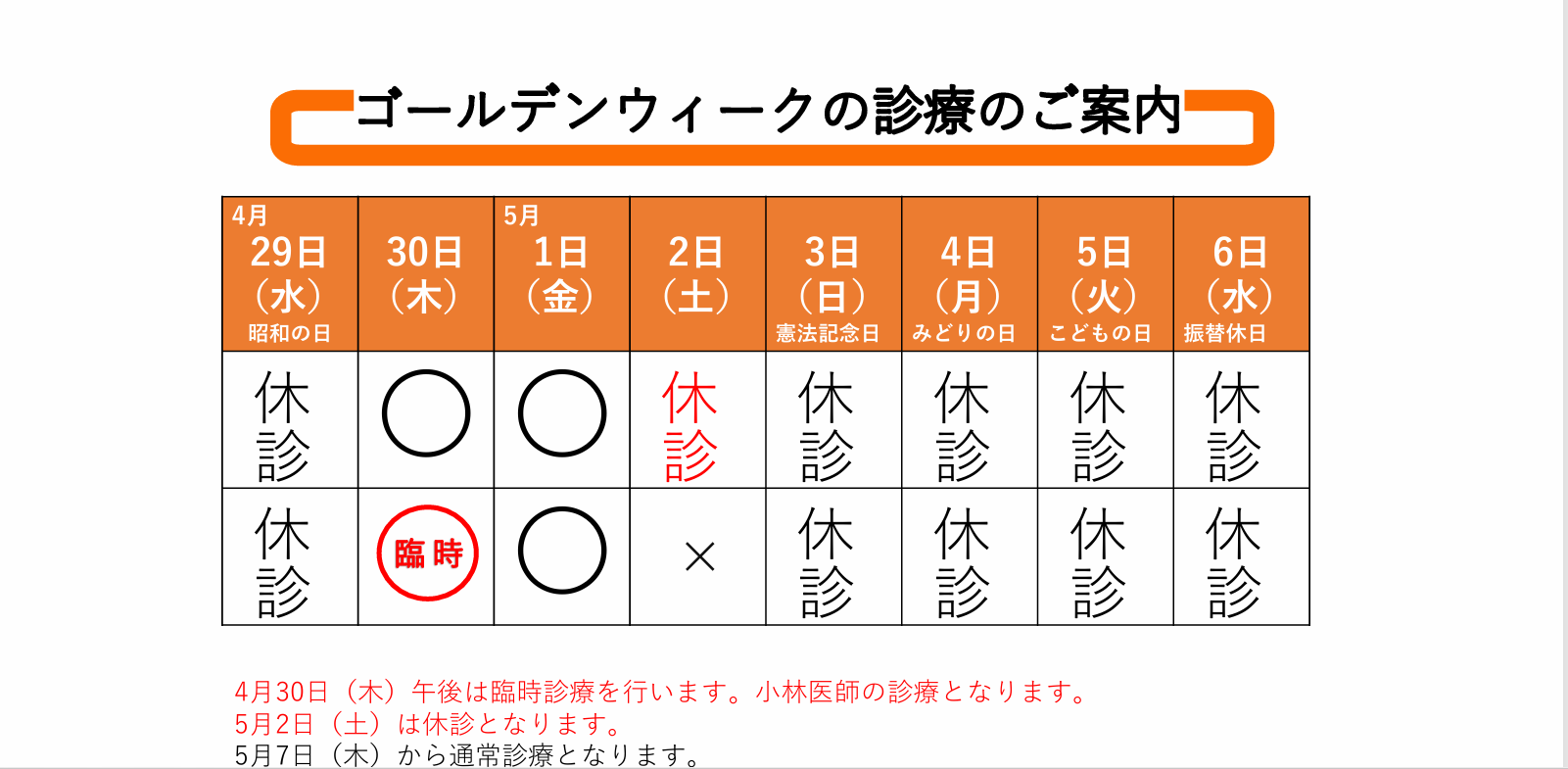 緊急の訪問診療に伴い、受付時間が急遽変更し早めに終了させていただいたり、医師の不在医師が代診になる事がございます。